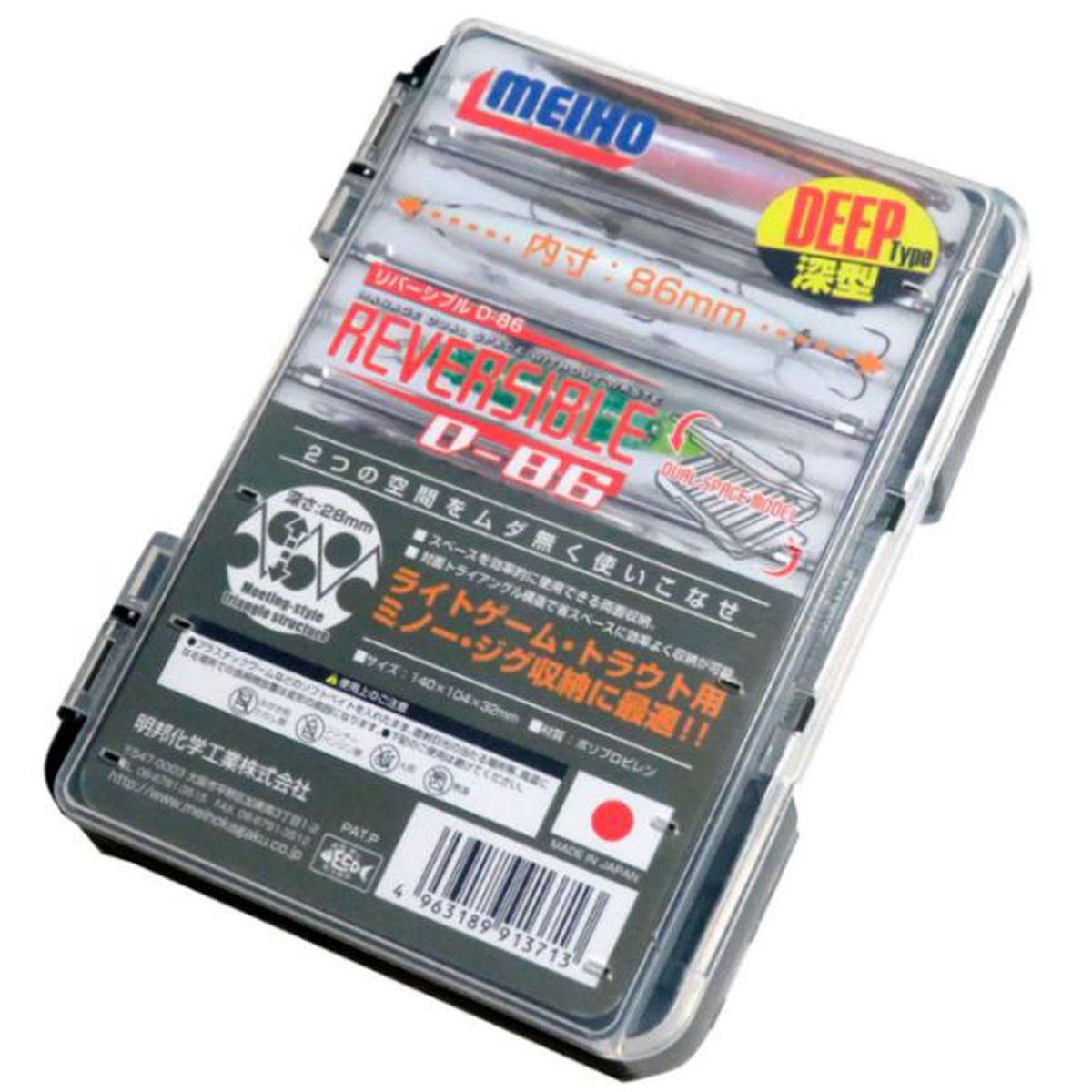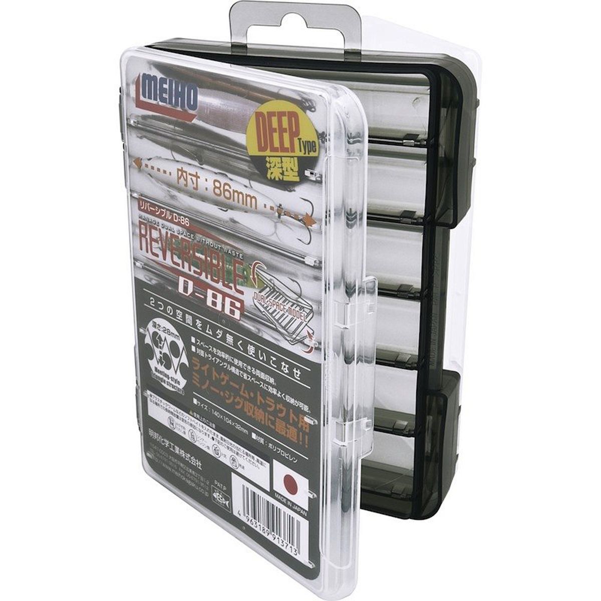 Коробка Meiho REVERSIBLE D-86 Black 140×104×32мм. Изготовлена в Японии из высококачественного первичного пластика, продумана конструктивно, имеет надежные застежки и долговечные петли.
