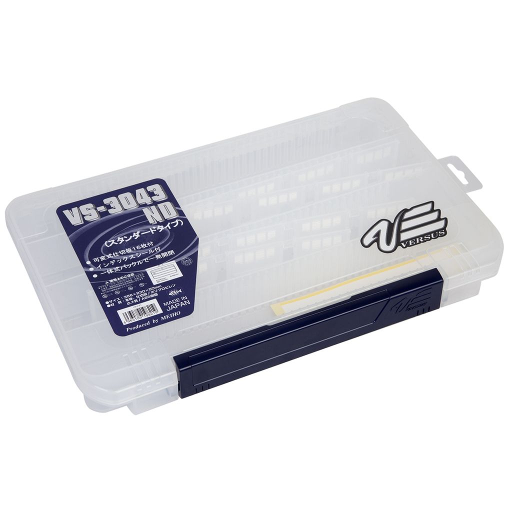 Versus VS-3043NDDM - одна из наиболее востребованных серий Meiho, почти все модели которой запатентованы. Кроме традиционного качества самого пластика и литья обратите внимание на застежку: как правило, для плоских длинных коробок используется две застежки. В данном случае - всего одна, но зато какая! Изготовленная из другого типа пластика, она может выдержать множество напряжений при открывании/закрывании, плотно прилегает к корпусу, а управляться с ней легко даже одной рукой. Посмотрите на конструктивные особенности съемных разделителей: если в других случаях их положение можно фиксировать ТОЛЬКО между направляющих ребер, то теперь держатели таковы, что вы не привязаны жестко к этому фактору: хотите - поставьте разделители по ребрам, хотите - между ними: они все равно будут надежно фиксированы, тогда как у вас появляется больше свободы в формировании пространства.