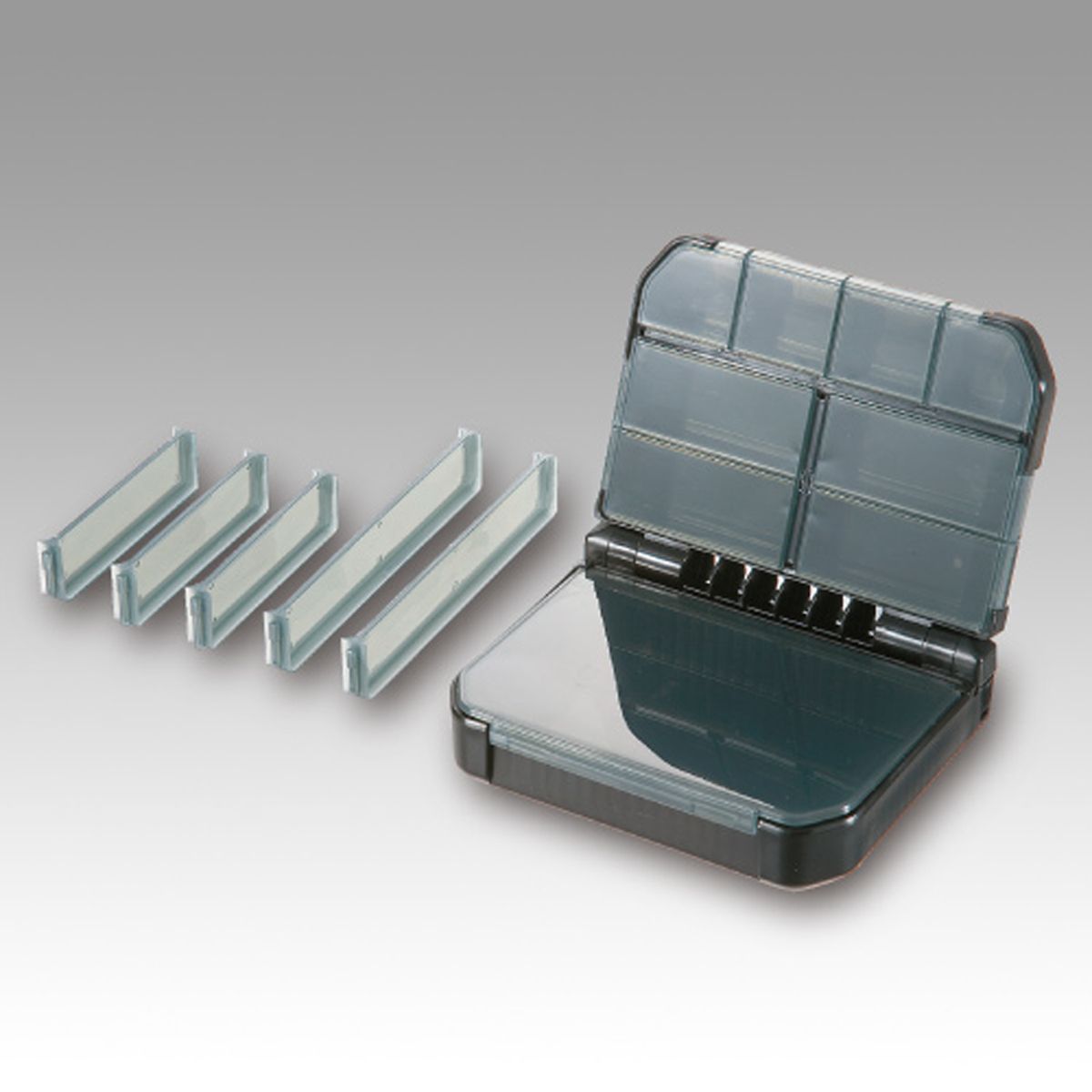 8 отсеков, защищенных полупрозрачными крышечками с каждой стороны, модель VS-318 комплектуется 5-ю свободными разделителями, которые можно разместить как в продольной, так и в поперечной плоскости.