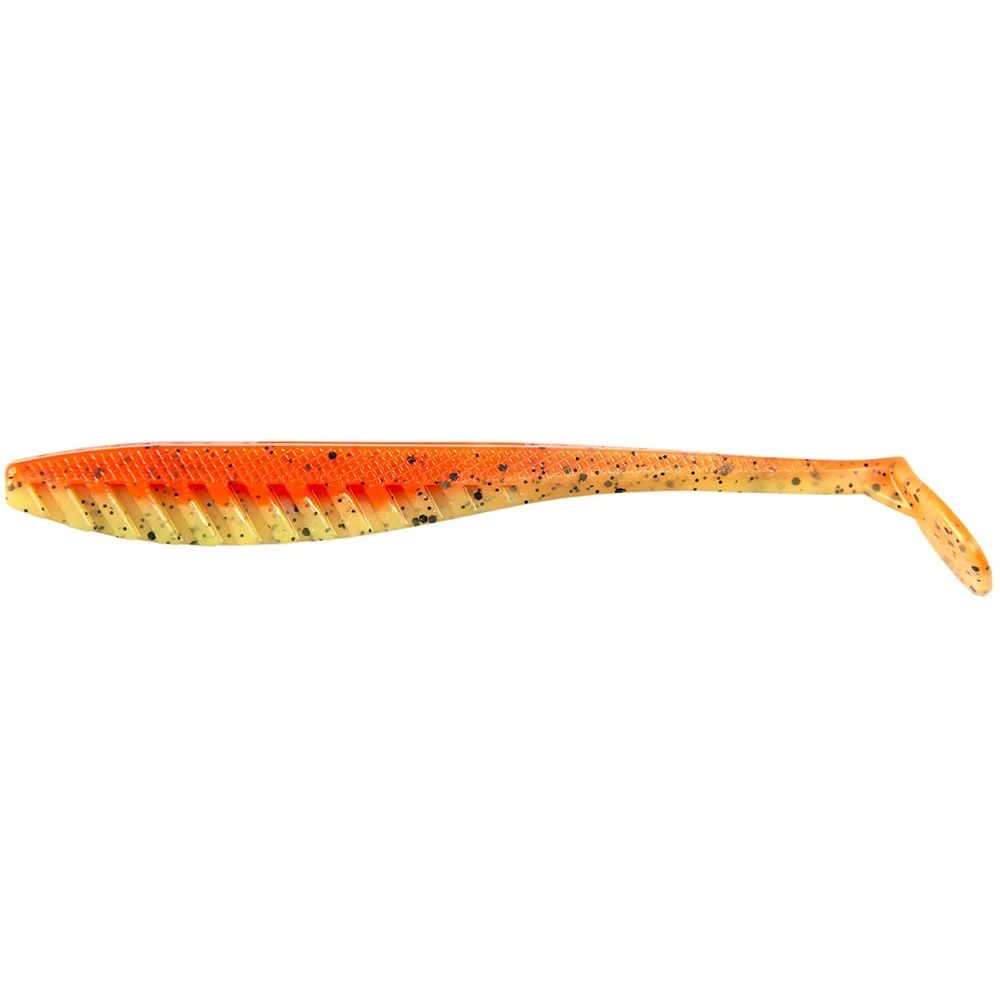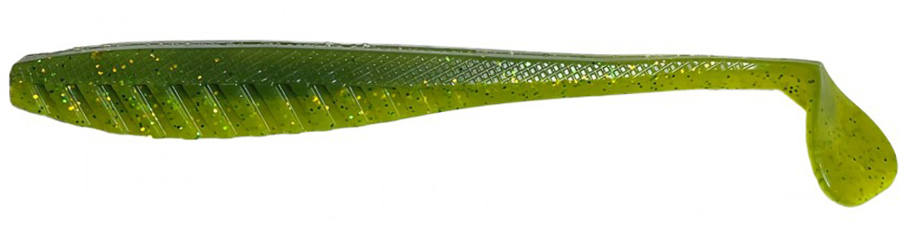 Hustle Minnow — виброхвост прогонистой формы, с небольшой трапециевидной «пяткой», длинным деликатным хвостиком и характерной ребристой нижней частью.