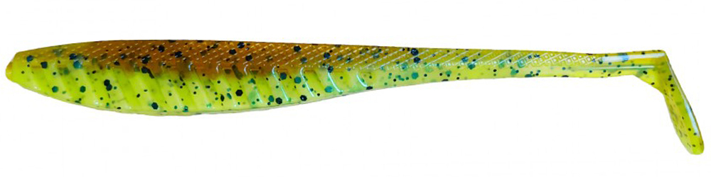 Hustle Minnow — виброхвост прогонистой формы, с небольшой трапециевидной «пяткой», длинным деликатным хвостиком и характерной ребристой нижней частью.