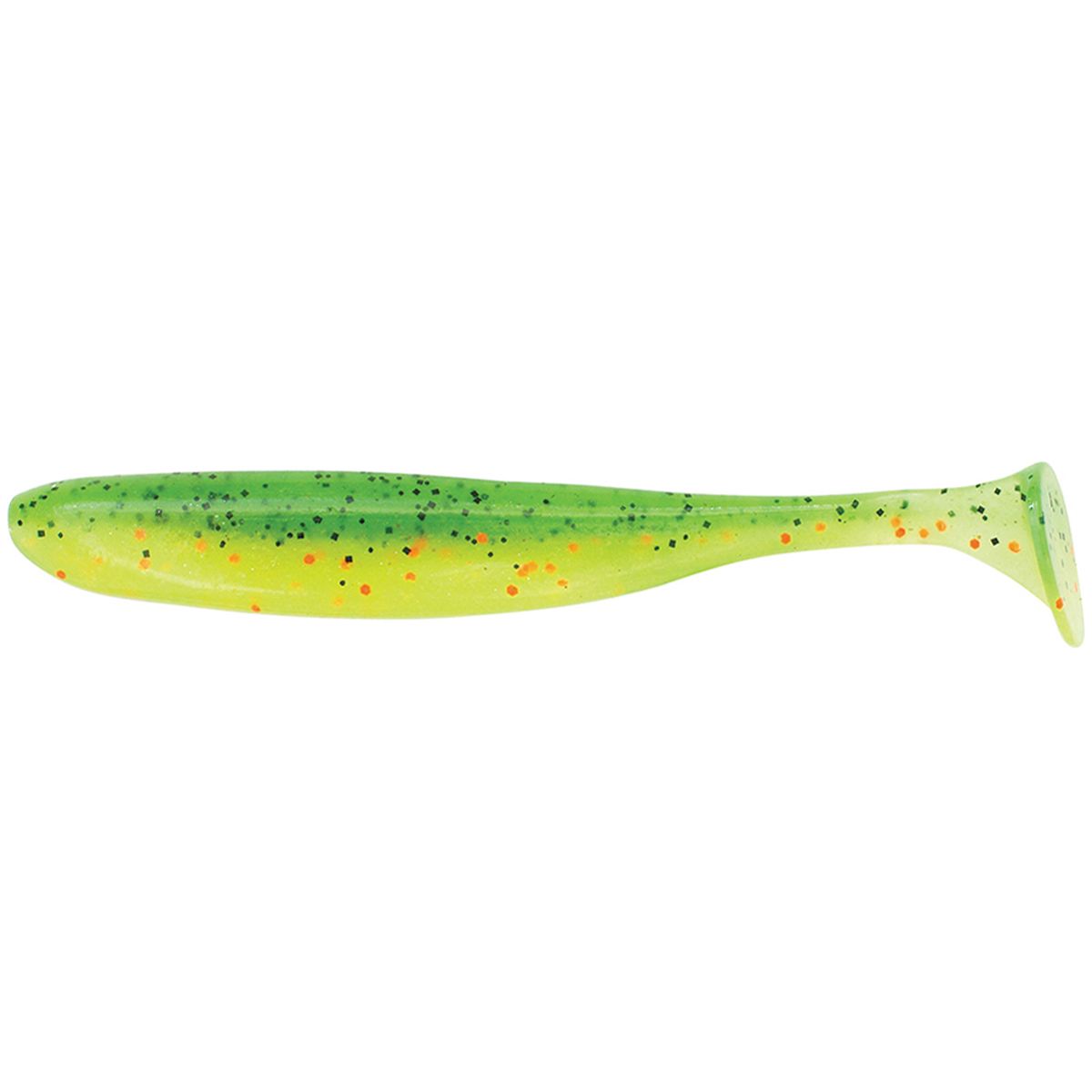 KEITECH EASY SHINER - классический виброхвост, который придется по нраву рыболовам, предпочитающим традиционные формы приманок, но вместе с тем – желающим попробовать в работе современную съедобную резину. Тело приманки сильно сплющено с боков, а тонкий хвост заканчивается достаточно массивной лопастью. Это придает этому виброхвосту резко очерченную средне амплитудную высокочастотную игру. Такая приманка будет актуальна всегда и везде - на тяжелом джиге, в не огруженном оснащении, на «Каролине» и судачьем «отводном поводке». Приманка изначально проектировалась под оффсетный крючок, о чем свидетельствуют специальные прорези в верхней и нижней части тела, но ничего не мешает оснастить ее двойником, или обычной джиг-головкой. За счет большого количества соли, входящей в состав материала, у EASY SHINER достаточно сильная отрицательная плавучесть, что позволяет его использовать в оснастках «Wacky» и «Neko».