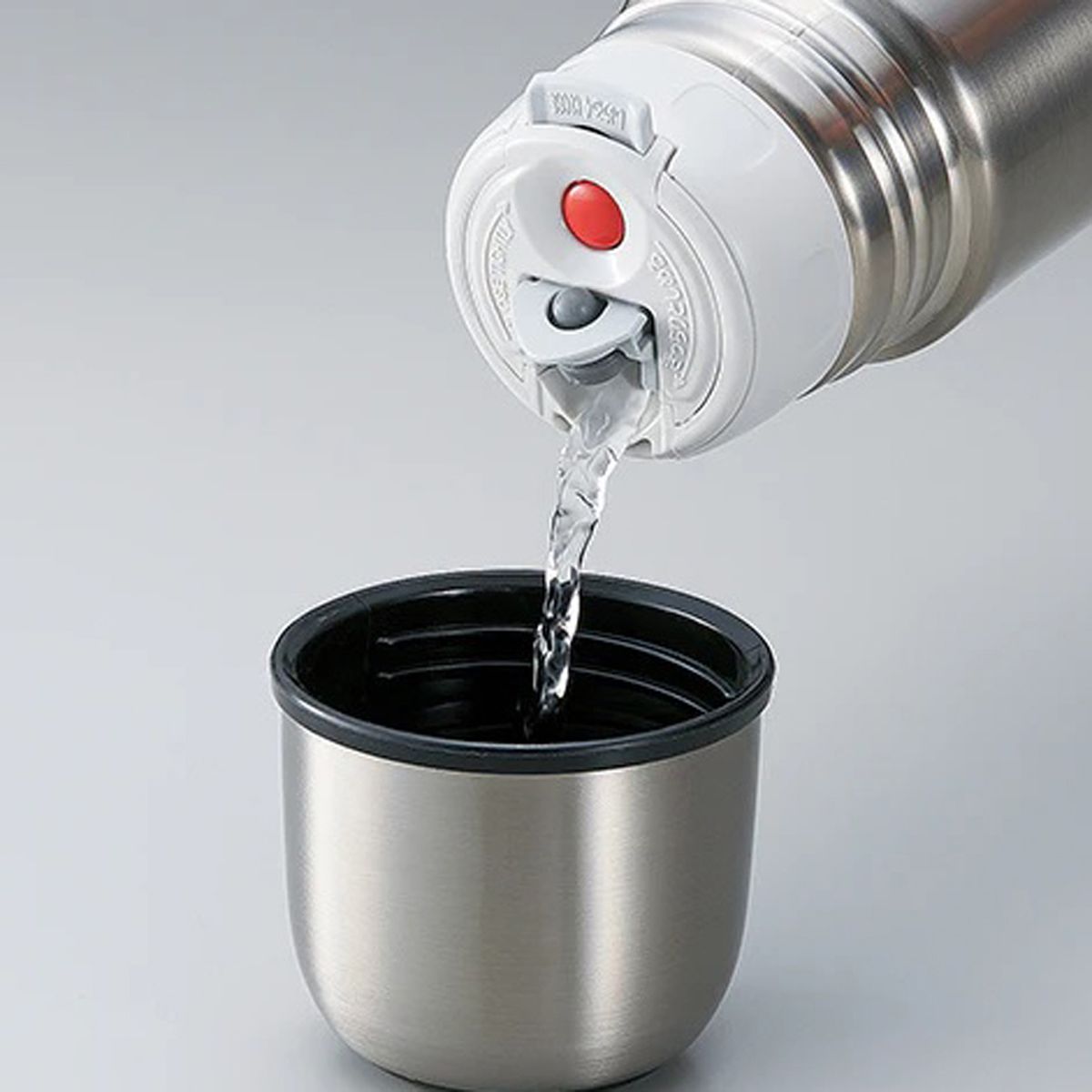 Клапан крышки выполнен из высококачественных материалов. Представляет собой кнопочную конструкцию, в которой одна кнопка его открывает, а вторая соответственно закрывает. Конструкция сделана так, что при закрытии термоса с открытым клапаном тот закрывается автоматически. Особая конструкция позволяет налить очень аккуратно и без брызг Ваши напитки. Все очень легко разбирается для промывки. Так что, вы не будете ощущать суп в вашем чае.